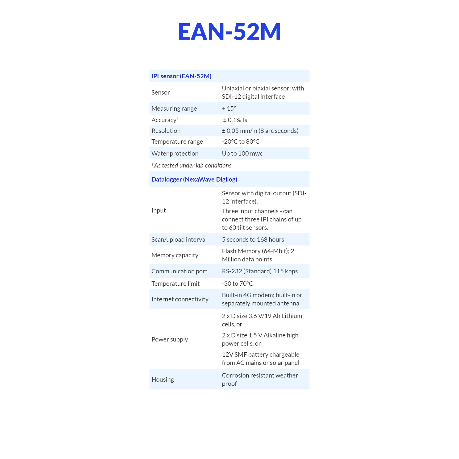 The EAN-52M uses high-resolution SDI-12 sensors to provide accurate measurements of lateral ground movement. With a resolution of ±0.05 mm/m, it detects even minor shifts in structure stability, helping engineers monitor construction progress and identify potential risks.